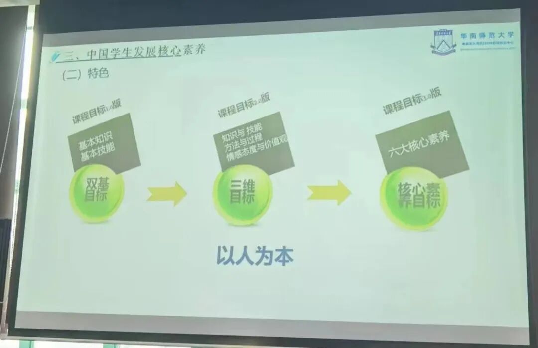 “以人为本,双基目标,三维目标,核心素养目标。”张教授的授课如一幅巧妙的画卷,描绘出中国学生发展核心素养的多维图景。在他的指引下,教育正在经历从“知识授予者”到“学习引导者”的转变。跨学科项目式学习的设计,将知识、能力和情感融合于实际问题中,激发学生的综合素养。